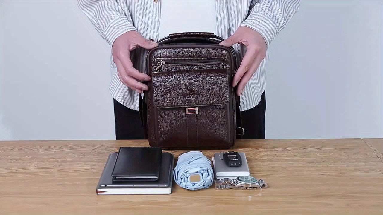 WEIXIER Men's Vintage Business Casual Adjustable Shoulder Bag - Black, Multiple Compartments, Zippered Pockets, Compact Design for Everyday Use, Everyday Shoulder Bag | Vintage Style Bag | Secure Zip Closure, Small Crossbody